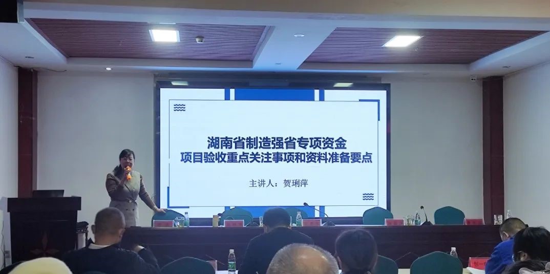 為進一步規(guī)范省級制造強省專項資金管理,強化績效和責(zé)任意識,加快推進湖南省制造強省專項資金項目建設(shè),確保項目驗收工作順利開展,2022年11月4日,由婁底市工業(yè)和信息化局主辦、婁底市中小企業(yè)公共服務(wù)平臺承辦的婁底市制造強省專項基金項目驗收培訓(xùn)會在婁底市中小企業(yè)公共服務(wù)平臺二樓會議室舉行。市工信局、婁星區(qū)工信局及婁底經(jīng)開區(qū)產(chǎn)業(yè)發(fā)展局分管領(lǐng)導(dǎo)出席,婁星區(qū)、婁底經(jīng)開區(qū)20家相關(guān)企業(yè)近50人參加此次培訓(xùn)會。